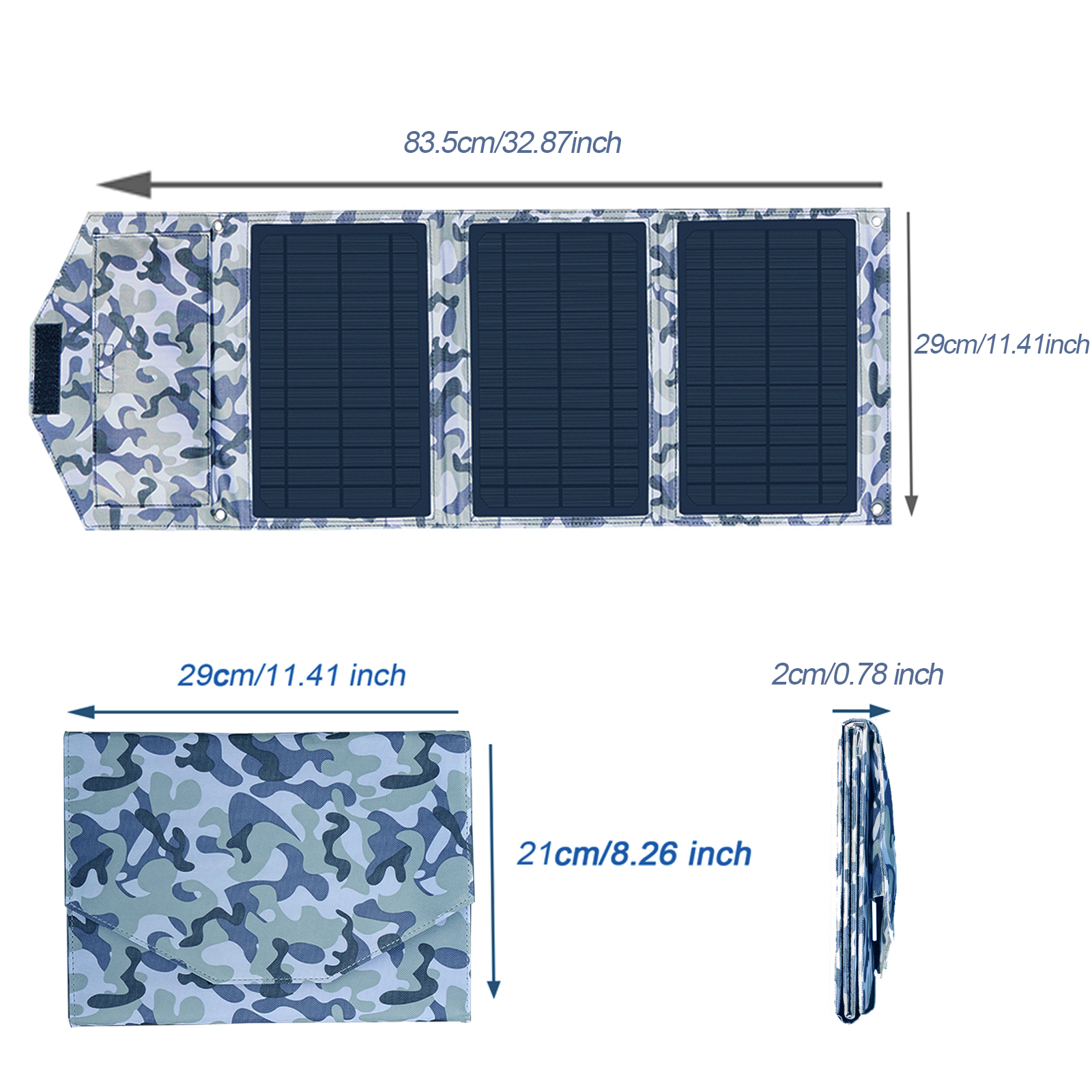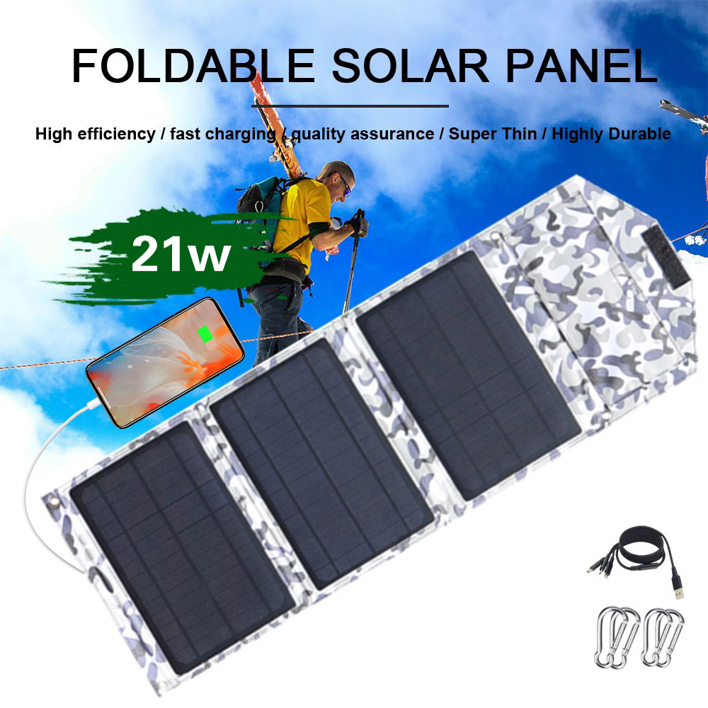 Foldable 21W Dual USB Solar Panel Outdoor Folding Water Resistant Solar Panel Charger Mobile Power Battery Charger With 3 in 1 Cable