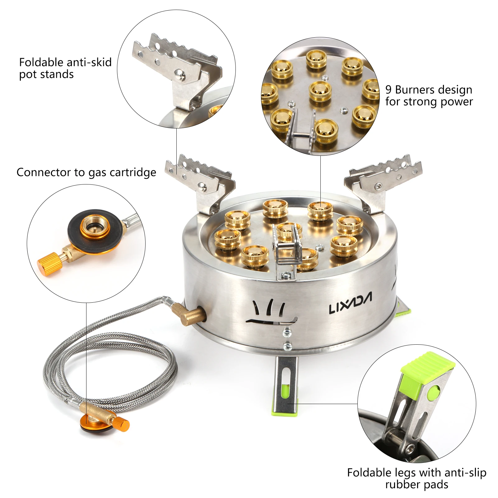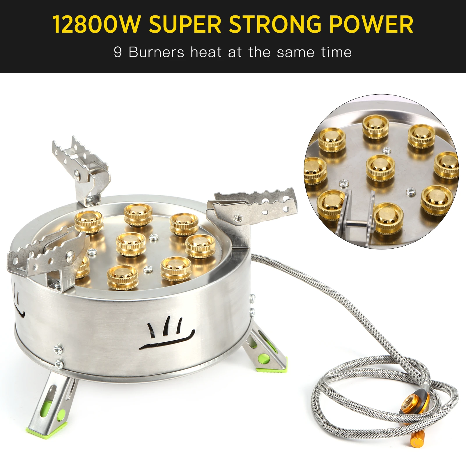 What is really cool about this particular burner is the fact that it comes complete with eight very small and individual burners that allow for very even heat distribution and for fast heating you can boil a pot of water in just a few minutes with this particular camping stove.