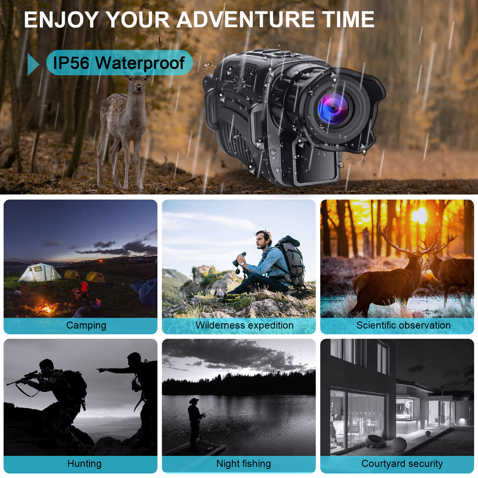 6 buttons can adjust multi-function. The operation is friendly to green hands. Night vision goggles can be your good helper in camping, night hunting gear/fishing/sailing, reconnaissance, security/surveillance, outdoor exploration, navigation, wildlife observation, cave adventure, courtyard monitoring, keep your property safe.
