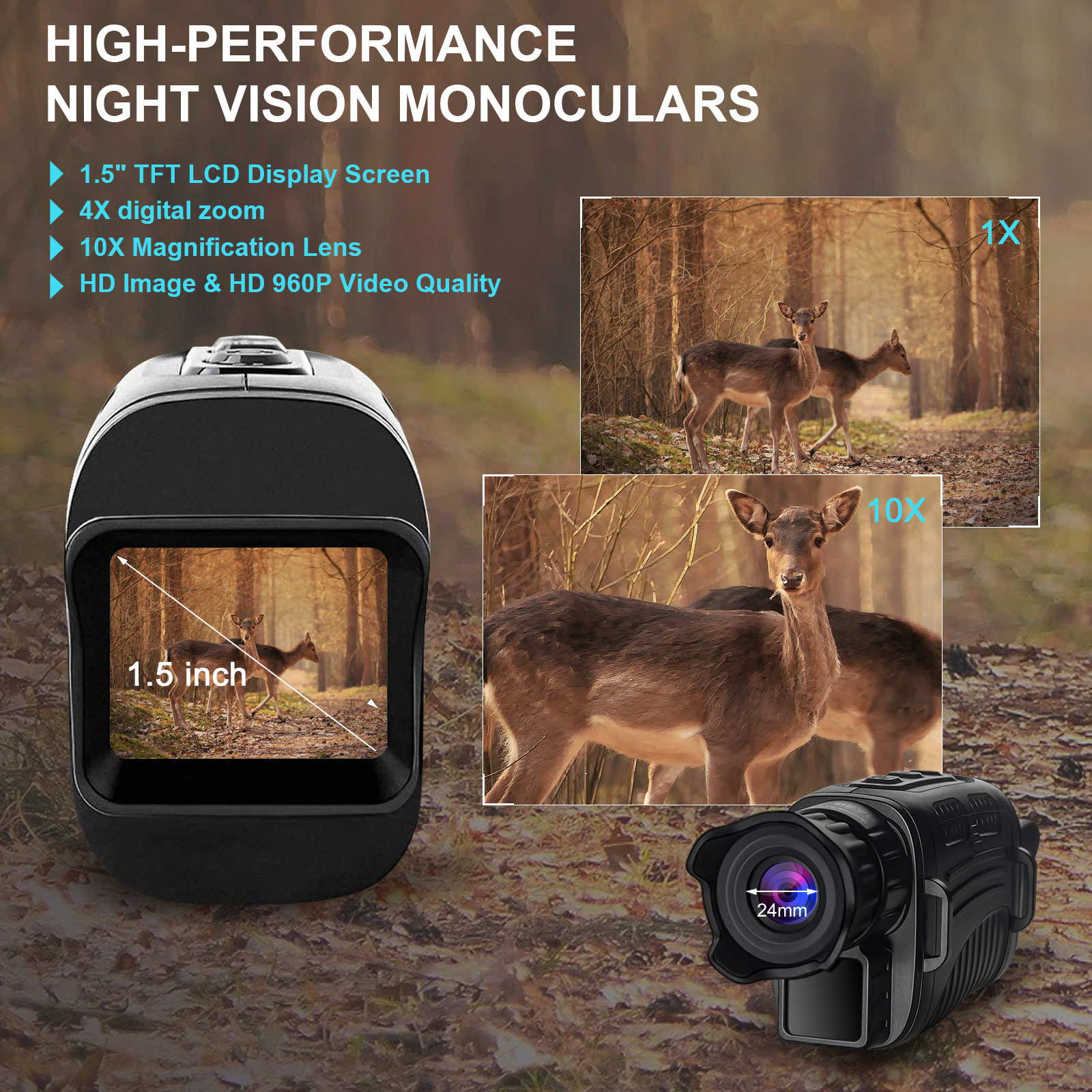 The High Definition IR Monoculars are tested by optics experts for an unforgettable experience. Excellent fully multi-coated all-optical system with a video camera, built-in 1.5″ TFT LCD display screen. You can record 1280*960 HD images and 960P videos with vivid detail and save them in computer via USB cable(included), share with your family and friends by night vision goggles.