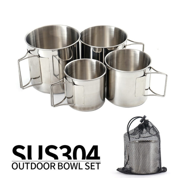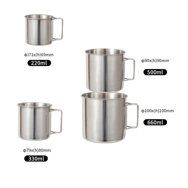 This camping cups are all made of 304 stainless steel material, wear resistant, corrosion-resistant and can provide long service time. 4 different sizes in a set, you can choose 220ml, 330ml, 500ml, 660ml, according to your demands. Stackable design allows smaller cup to inside bigger one. Wide applications, suitable for different scenes like outdoor camping, hiking, applicable and practical.