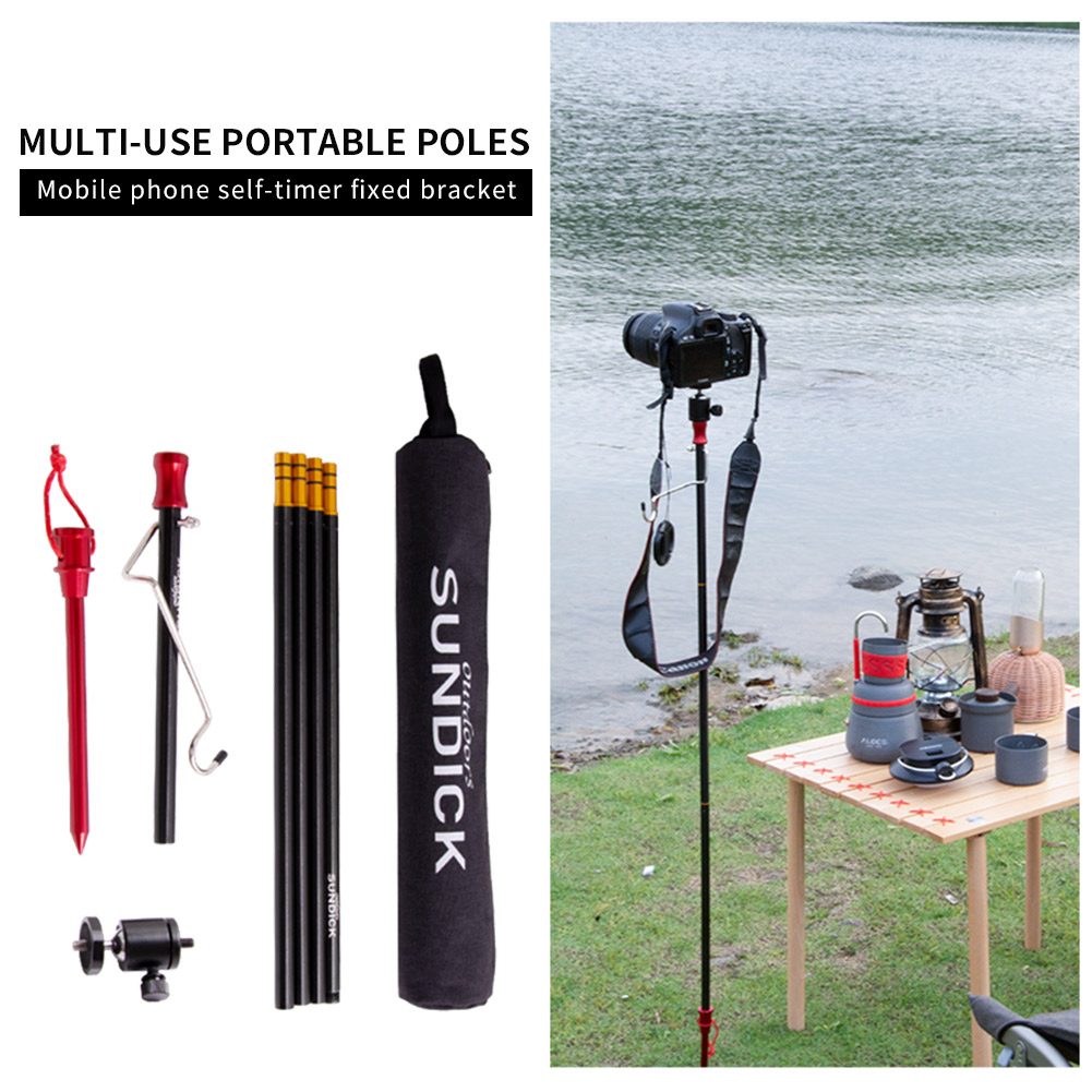SUNDICK Multifunctional Aluminum Alloy Outdoor Camping Hunting and Hiking Folding Lamp Post Pole. Portable Fishing Hanging Light Fixing Stand Holder