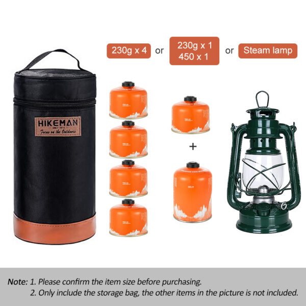 Note: Only bag included, gas tank, lantern and other items are for demo.