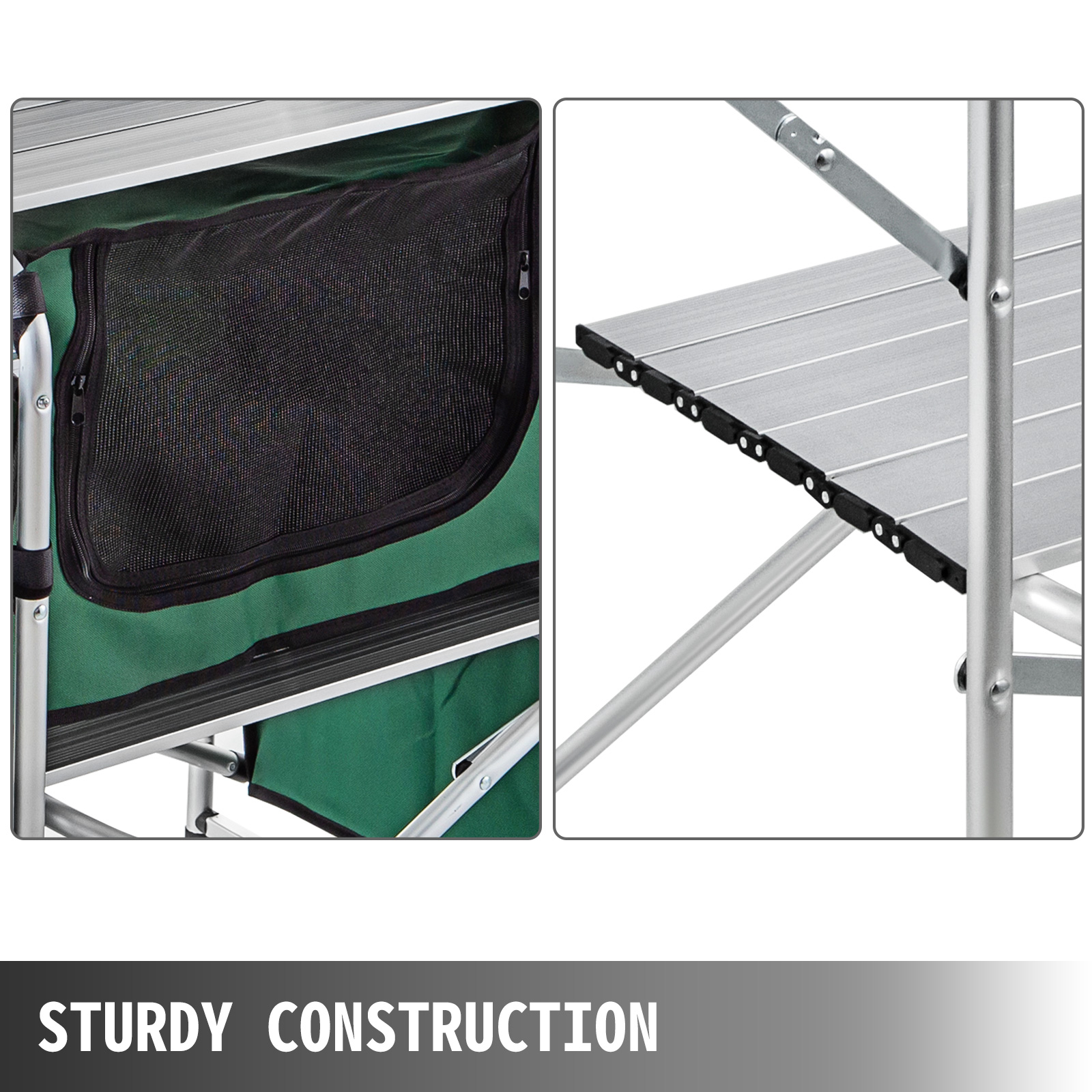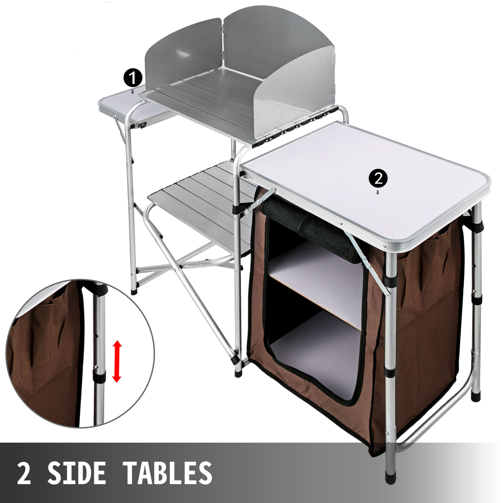 VEVOR Outdoor Portable Alluminum Foldable Kitchen Table with Hanging Fabric Storage Shelves